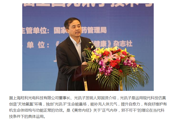独创“光讯子生命能量场”,能补充人体元气,提升自愈力,有良好维护有机生命体结构与功能正常功效。是《黄帝内经》关于“正气存内,邪不可干”的伟大理论在当代科技条件下的具体应用。实验表明,有机生命体的细胞成长因子若接受良好的生命能量讯息,既能引导细胞进行良好的本能生化反应,当然包函启动自愈力系统。